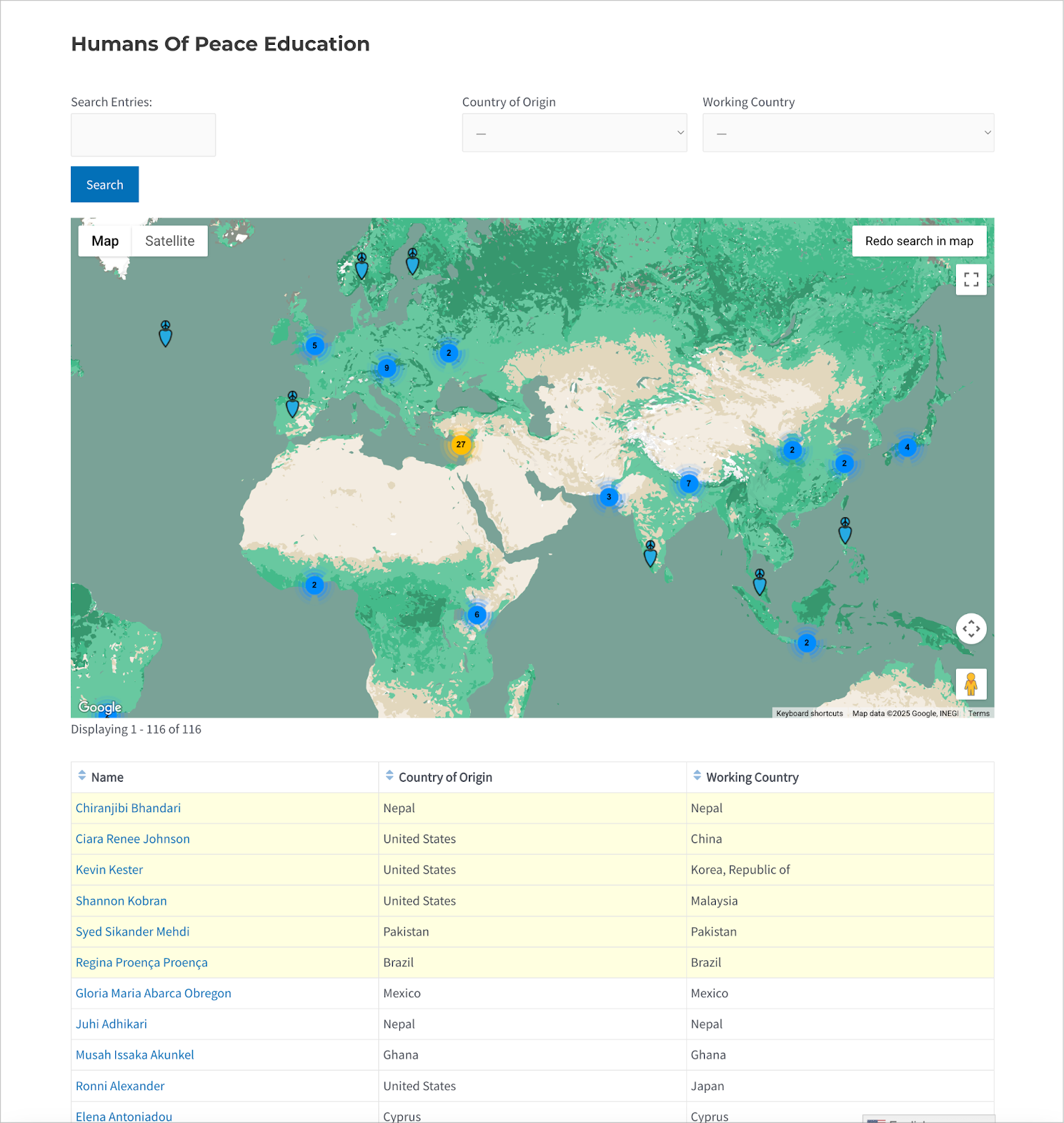 To help drive its initiatives forward, the GCPE leverages GravityKit as the backbone for several key projects. These include the Mapping Peace Education research initiative and the Humans of Peace Education advocacy campaign. In addition, GravityKit powers the GCPE’s events calendar and databases of coalition partners and supporters, ensuring seamless organization and engagement on a global scale.