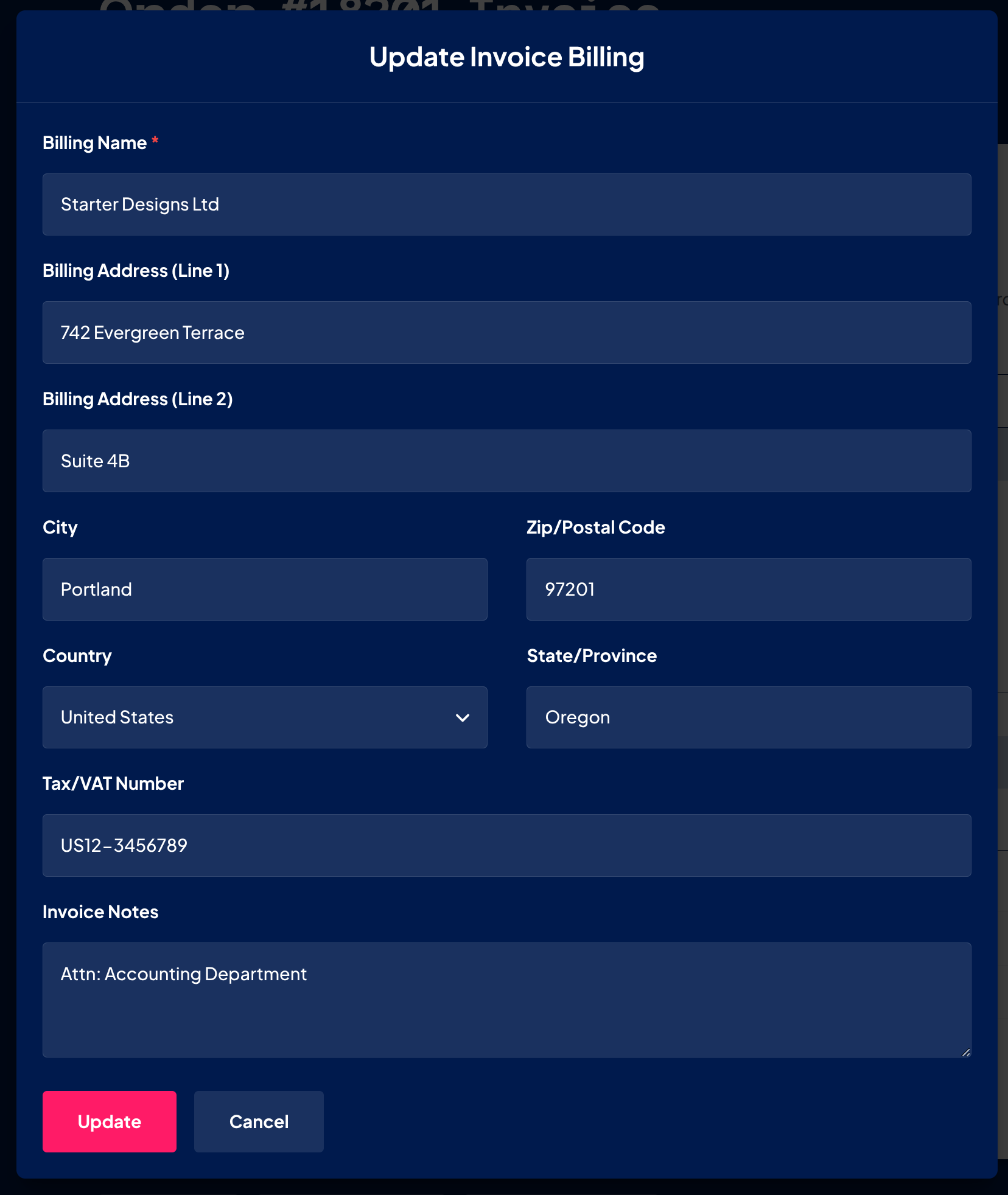 - Invoice Notes: Any additional information you need on the invoice (optional)