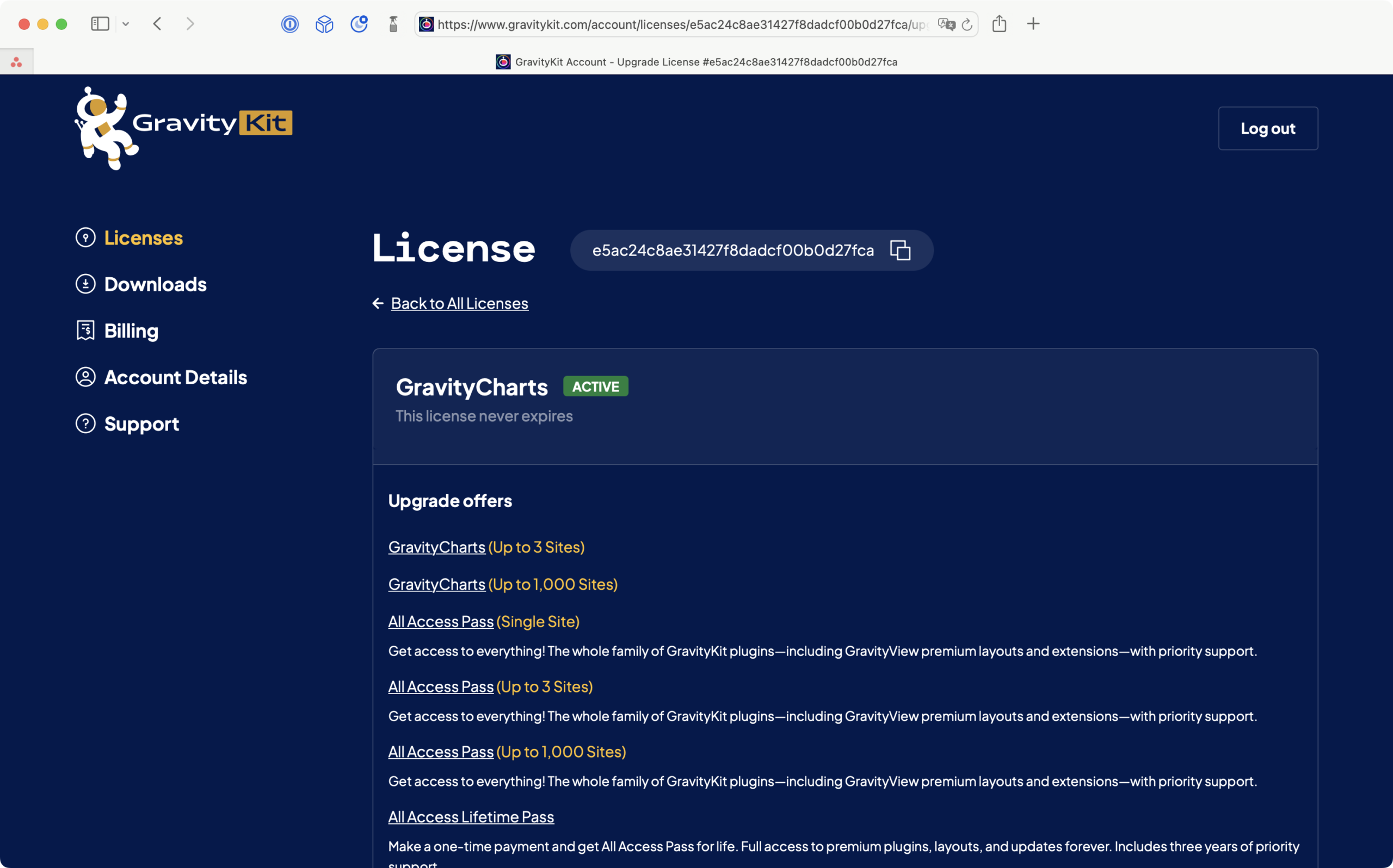 To upgrade your license, first access your GravityKit Account page.