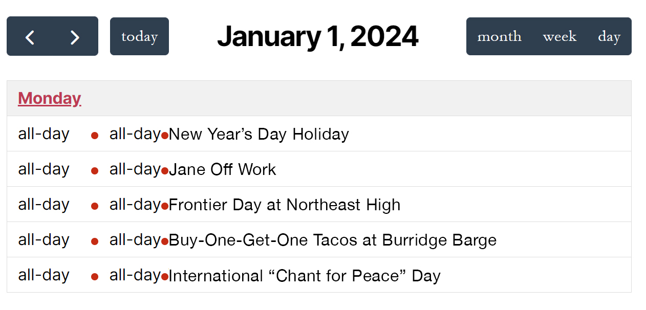 If you are using one of the List layouts in your calendar, you might want to hide the all-day text that shows up.