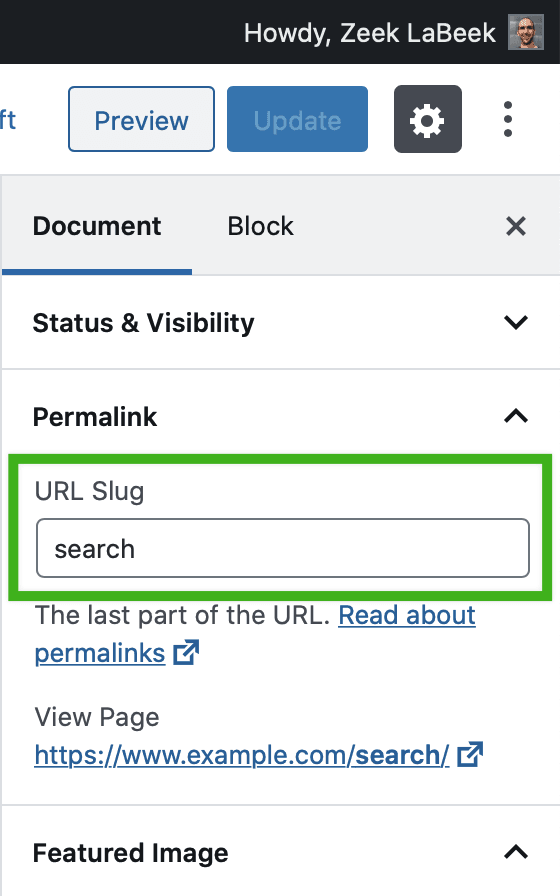 How to update the URL Slug