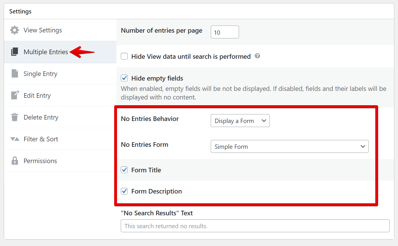 Inside the View editor, on the View Settings metabox > Multiple Entries tab, you can define the behavior of the View when no entries exist:ย