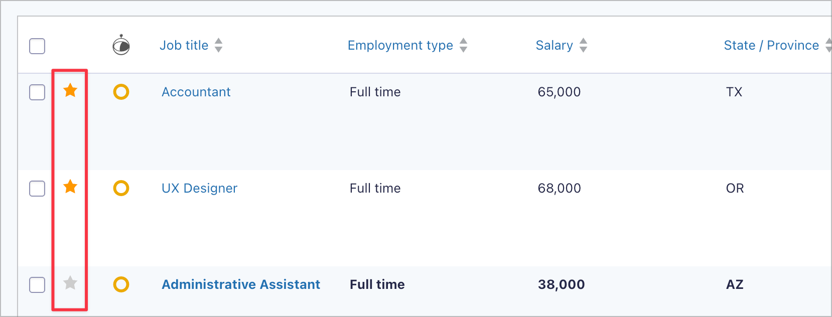 Using the GravityView – Featured Entries Extension, we can mark certain job listings as “Featured” by starring them in the Gravity Forms Entries page. This will highlight them and move them to the top of the job board.